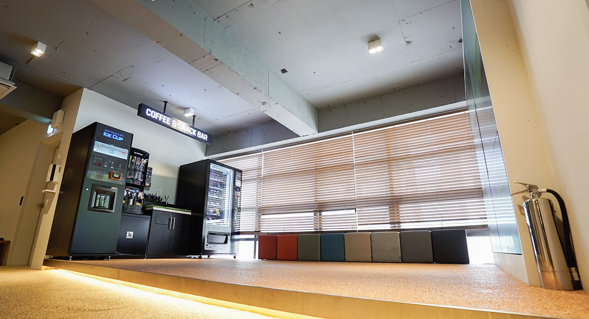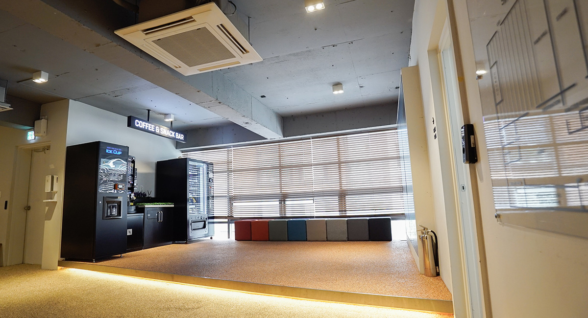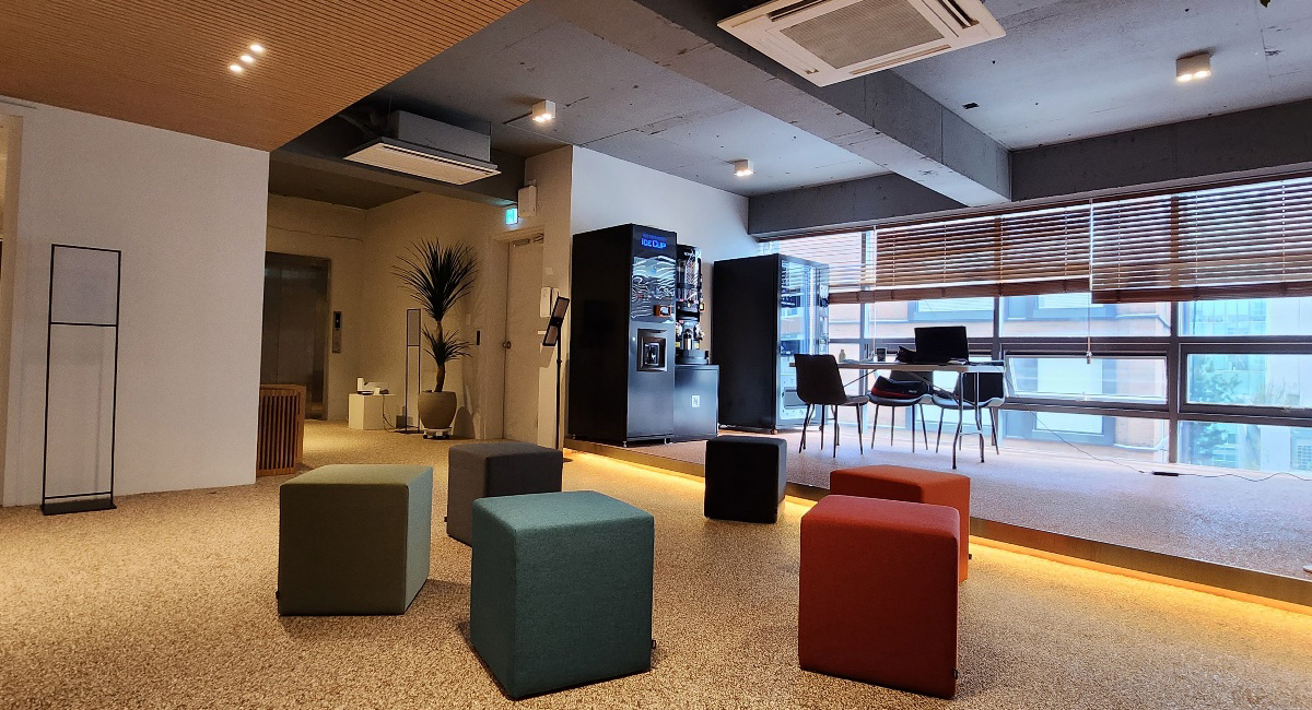 모던한 분위기의 로비에는 카페 기기와 스낵바가 설치되어 있습니다.