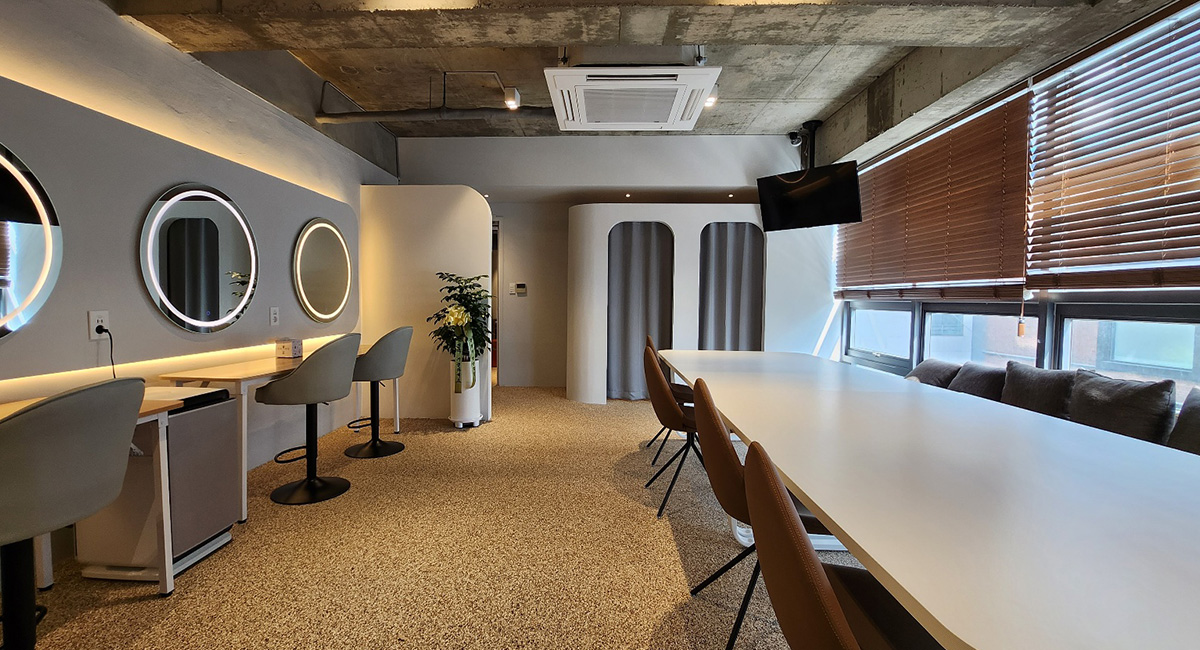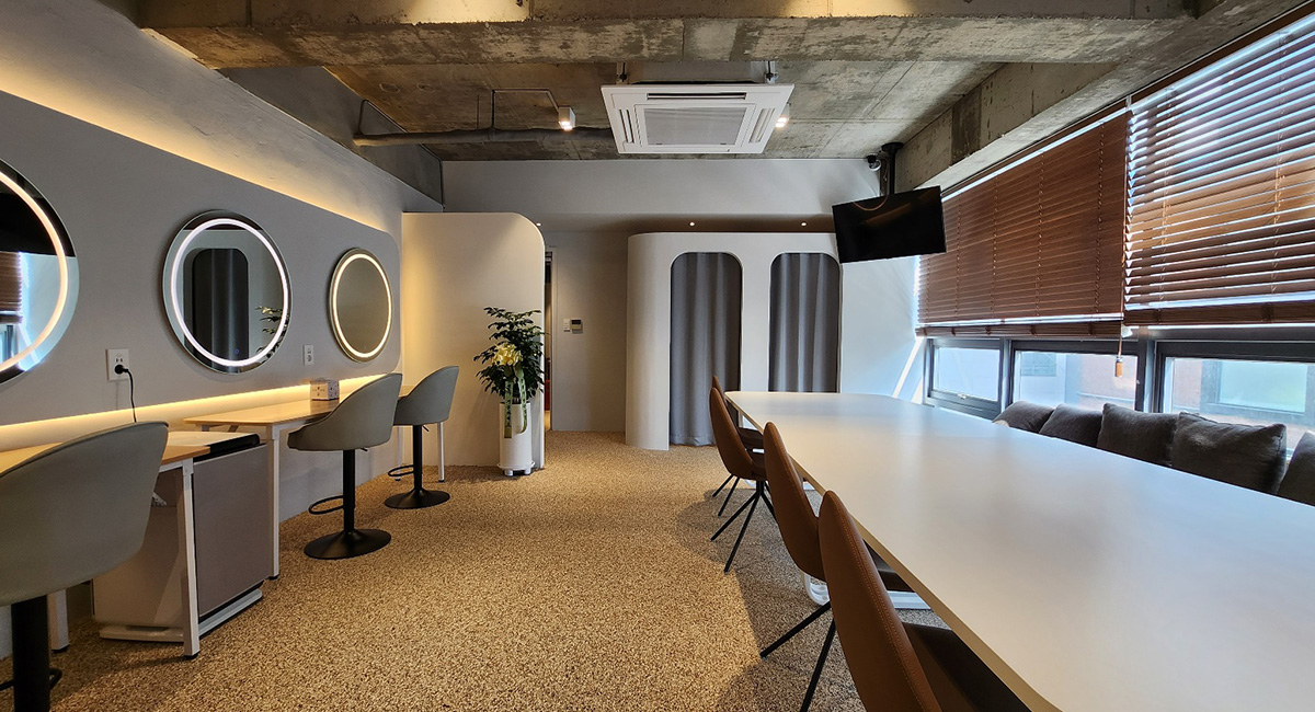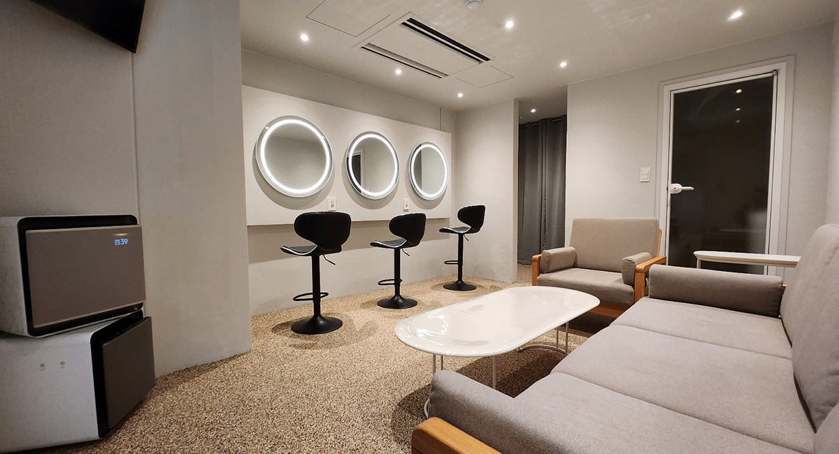 출연자 전용 화장실과 독립적인 공간, 메이크업 공간과 드레스 룸, 대형 테이블로 구성되어 있습니다. (최대 15인)